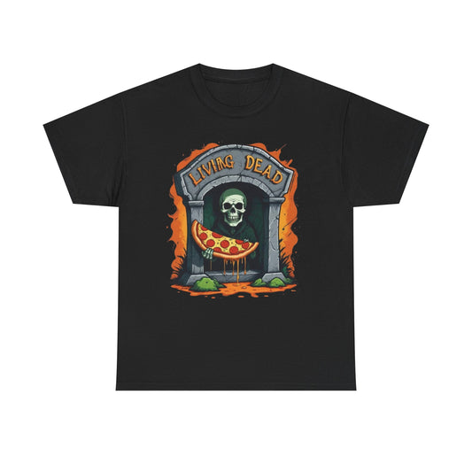 Living Dead Pizza Tee, Unisex Halloween T-shirt, Spooky Shirt, Casual Everyday Wear, Unique Gift for Pizza Lovers