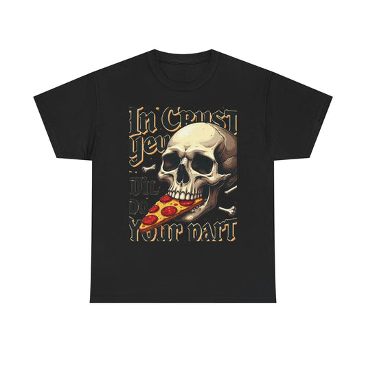 Skull Pizza Tee, Unisex Heavy Cotton Tee, Halloween Shirt, Funny Pizza T-Shirt, Gift for Food Lovers, Graphic Tee for Parties