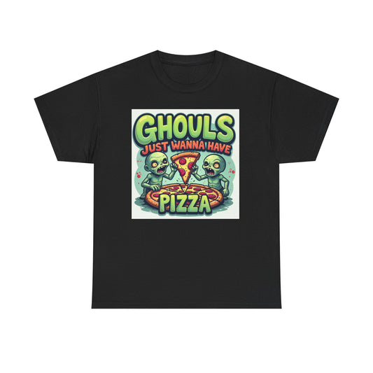 Ghouls Just Wanna Have Pizza Tee - Fun Unisex Heavy Cotton T-Shirt for Halloween, Pizza Lovers, Casual Wear, Party Outfits, Unique Gifts