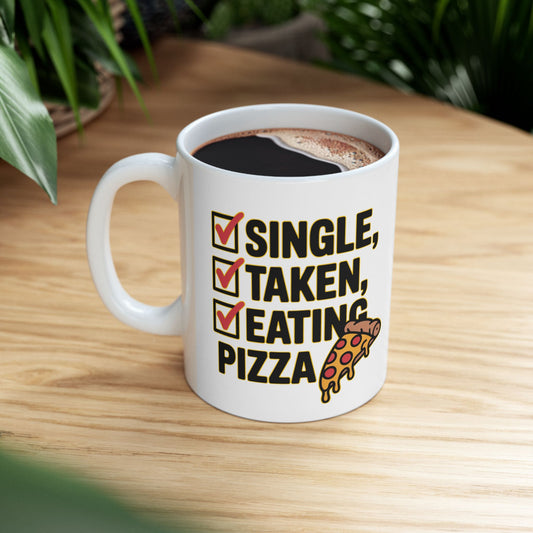Single, Taken, Eating Pizza – Relationship Status Mug