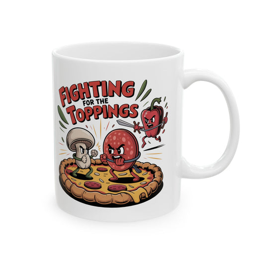 Coffee Mug Fighting for the Toppings