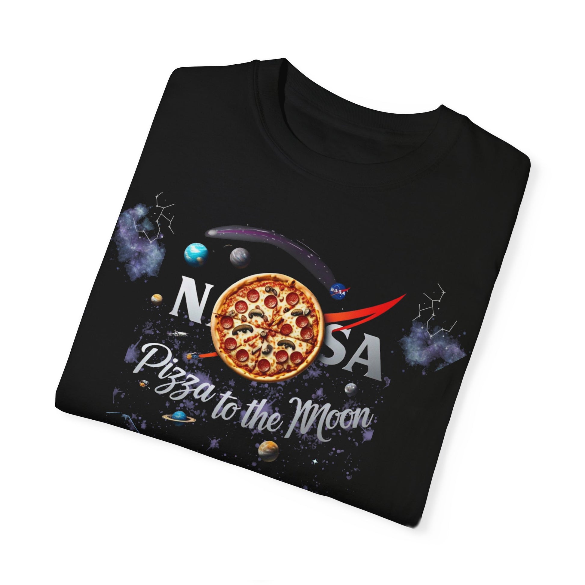 Pizza to the Moon Unisex Garment-Dyed T-Shirt | Fun Space-Themed Tee for Pizza Lovers