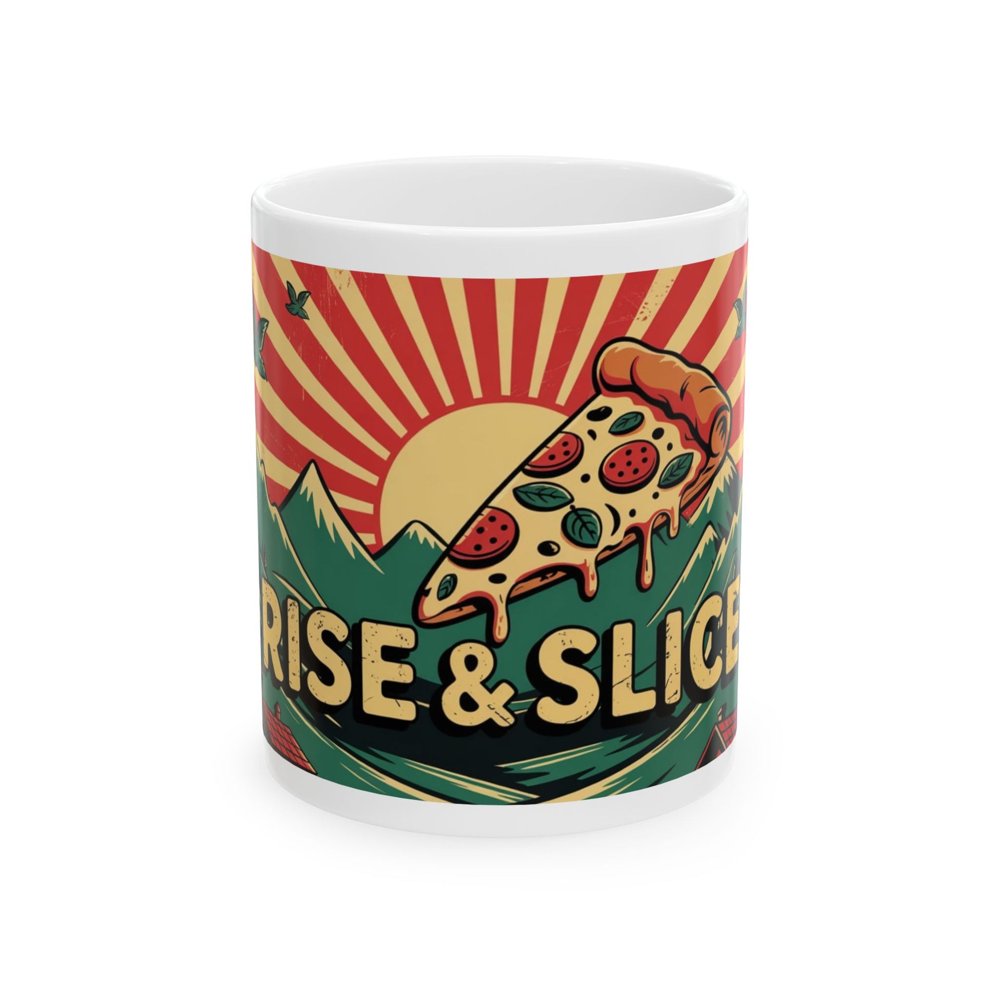 Rise & Slice Pizza Ceramic Mug - Vibrant Mountain Design 11oz & 15oz