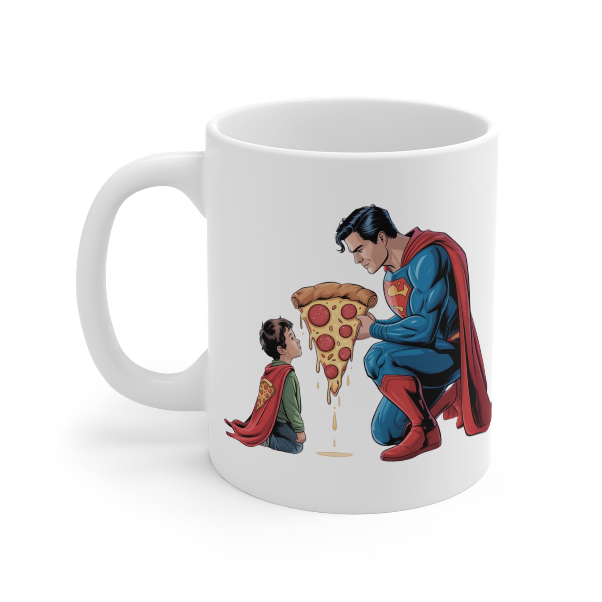 Introducing a delightful mug that adds a touch of whimsy to your daily routine. This 11oz ceramic mug features a charming design with a playful and heartwarming theme. Whether you're sipping your favorite coffee, tea, or hot chocolate, this mug is perfect for cozy mornings or relaxed afternoons. Its vibrant artwork makes it a wonderful gift for comic book lovers, parents, or anyone who appreciates a bit of joy in their day. Ideal for occasions like birthdays, holidays, or simply as a treat for yourself, this mug brings a smile to your face and warmth to your hands. Make your kitchen or office feel more inviting with this special piece!