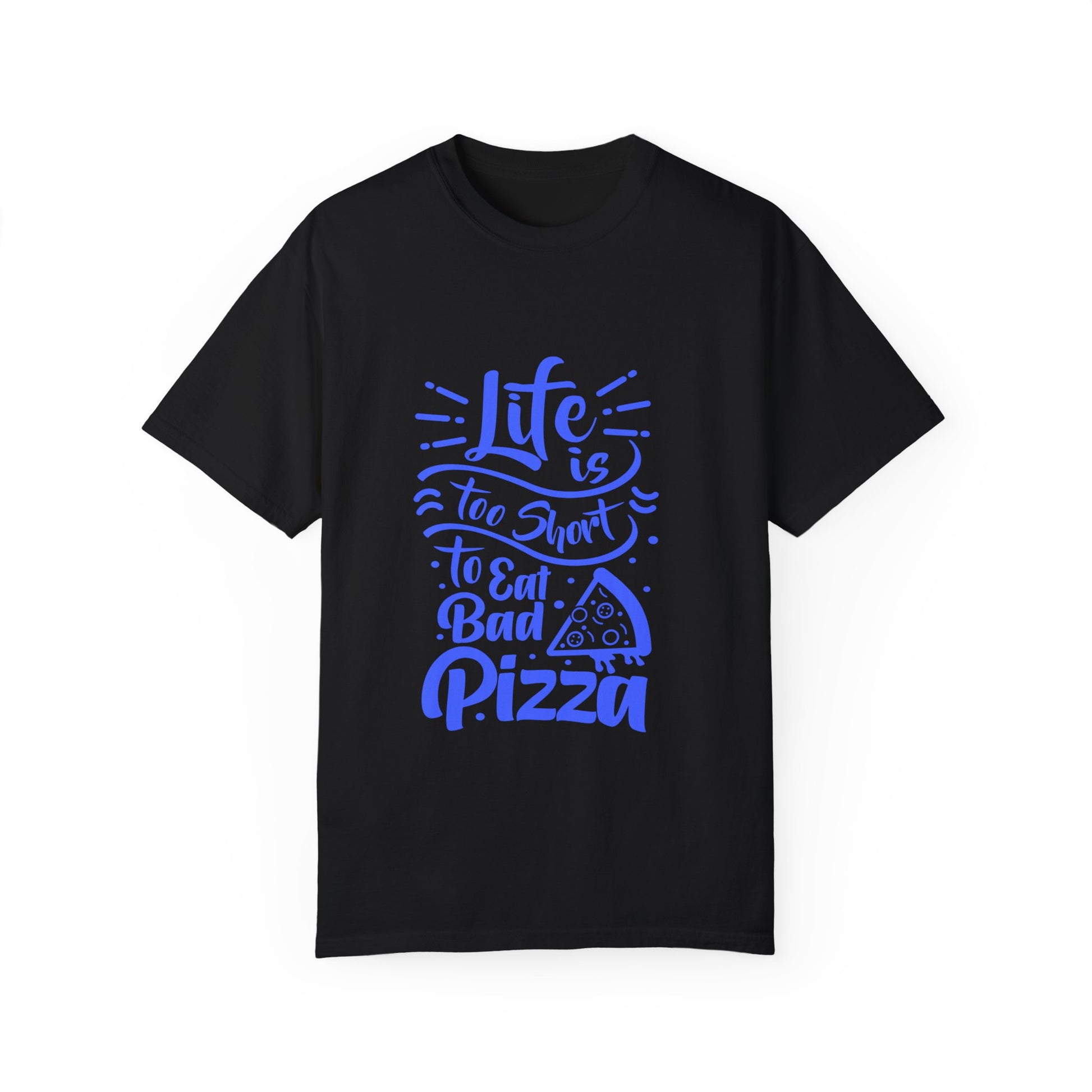 Unisex Garment-Dyed T-Shirt - "Life is Too Short to Eat Bad Pizza" - Fun Foodie Tee